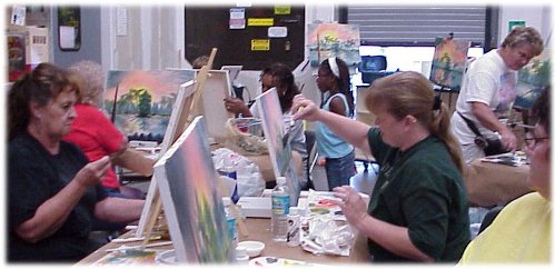 of painting. In these class photos, each person is holding their own unique painting,